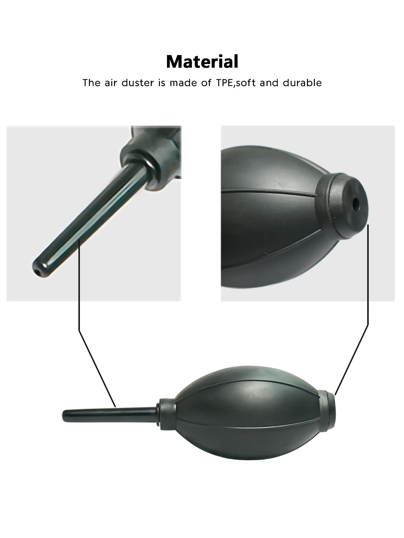 The air duster is made of TPE,soft and durable.